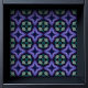 Dit geometrische behang heeft een kleine afdruk van paarse, indigo en blauwgroen kruisen. De print heeft details die doen denken aan glas in lood. Hoewel het op wanden kan worden gebruikt, maakt dit specifieke patroon deel uit van een collectie van schil-en-sticker achtergronden die speciaal zijn gemaakt voor voeringladen, de achterkant van planken en andere meubeloppervlakken.