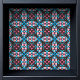 Dit geometrische behang heeft een kleine afdruk van zachte roze tinten, levendige blauwe tinten, diepe bruine tinten en zwarte contouren. De print heeft details die doen denken aan glas in lood. Hoewel het op wanden kan worden gebruikt, maakt dit specifieke patroon deel uit van een collectie van schil-en-sticker achtergronden die speciaal zijn gemaakt voor voeringladen, de achterkant van planken en andere meubeloppervlakken.