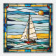 Vaar met kust stijl met behulp van deze schil en stok behang met een sierlijke zeilboot in een glas-in-loodraam ontwerp. Dit levendige, door AI gegenereerde patroon legt een zeilboot vast die over de golven glijdt, omringd door op de oceaan geïnspireerde motieven in levendige kleuren die de elegantie van gebrandschilderde glaskunst nabootsen. Ideaal voor kustdecor, strandhuizen of kamers met een nautisch thema, dit gemakkelijk aan te brengen en verwijderbare behang brengt een tijdloze zeevaartcharme en serene oceaanvibes naar elke ruimte.