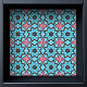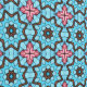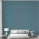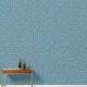Dit geometrische behang heeft een kleine afdruk van bruine starbursts en roze kruisen op een blauwe achtergrond. De print heeft details die doen denken aan glas in lood. Hoewel het op wanden kan worden gebruikt, maakt dit specifieke patroon deel uit van een collectie van schil-en-sticker achtergronden die speciaal zijn gemaakt voor voeringladen, de achterkant van planken en andere meubeloppervlakken.