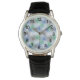 Dit mannen horloge heeft een modern design van sterrenbeelden in een midden van de eeuw, in glaucode (blauw), grijs, lichtblauw en groen.