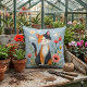 Glimlachende Calico-kat in bloeiende tuin Kussen