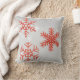 Dit feestelijke kussen heeft drie glinsterende rode sneeuwvlokken op een zachte, zilveren achtergrond. De glitteraccenten voegen een vleugje magie toe, waardoor het de perfecte aanvulling is op uw vakantiedecor.