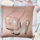 Voeg een beetje elegantie toe aan uw kamer voor een Sweet Sixteen of andere alledaagse kussen met deze gooiende kussen met glitterende mode-accessoires (hielkoenen en -paars) in een trendy retro-stijl tegen een opvallende achtergrond van het schitteren van roos goud. Omgekeerd heeft een roos goudglitterpatroon. Zoek ID675 om coördinerende producten en kleurenopties voor dit ontwerp te zien.