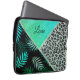 Glittery Blauwgroen Tropical Leopard Print Laptop Sleeve
