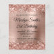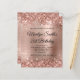 Een glamoureuze uitnodiging voor haar 21ste verjaardag. Faux glitter met roos glitter tegen een coördinerend faux glanzend geborsteld metaal grafisch afbeelding voor folie. De fancy zwarte kalligrafie kan worden aangepast. Alle glans en roze glans in dit moderne, girale design zijn digitale beelden. Een budgetpapieroptie voor je verjaardagsfeest. U kunt de envelopoptie kiezen.