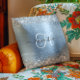Glittery Silver en Light Blue Monogrammen Kussen