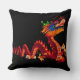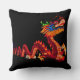 De Chinese Parade Dragon. Deze draak gloeit oranje en rood met blauw en groen bovenaan. De achtergrond is zwart, het lijkt bijna alsof het zweeft.