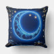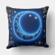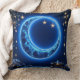 Een grillige nachtscène met een gloeiende halve maan verlicht met blauw neonlicht. Van boven hangen twinkelende sterren, die een magische sfeer uitstralen. De voorgrond moet getextureerde stenen versierd met delicate sprookjesachtige lichten tonen, waardoor de betoverende sfeer wordt versterkt. Diepe blues en metallic accenten roepen een dromerig hemels landschap op.
