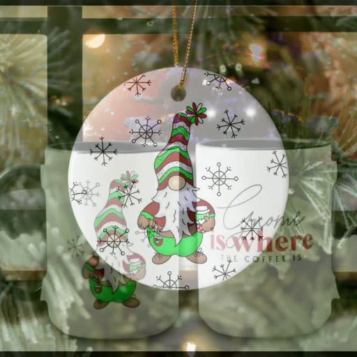 Gnome is waar de koffie is schattig kerstornament met een hand getrokken cartoon kabouter met een koffiekopje. Op de achterkant het citaat.