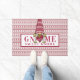 In de vakantiegeest met deze leuke waterverf gnoom Doormat met een gnoom met een rood en wit billijk eiland in het midden van de uitdrukking "gnome snoepje". De achtergrond is een rood en wit, billijk, gestreept patroon.