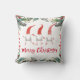 Een vrolijke kabouters kerstvakantie gooi kussen in vet rood, groen en zwart met hulst bessen en gebladerte grenzen. Schattigee kabouters in hoge petten en witte baarden voor een grillige maar moderne ontwerpstijl. Bekijk het volledige collectie van dit ontwerp en de variaties op: https://www.zazzle.com/collections/cute_gnomes_christmas_collection-119856380377822110