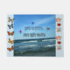 Een prachtig uitzicht van de oceaan met golven die naar de kust snellen. De lucht is zo blauw met een paar witte wolken. In de lucht zijn de woorden "God goed de hele tijd" met 3 verschillende gekleurde vogels vliegen rond deze woorden.