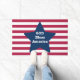 Deurmat Deurmat voor een decoratieve deuropening voor huis of kantoor inrichting decor accessoire bedrukt met God Bless America Rood Wit En Blauw belettering en strepen artwork ontwerp door TheFabricSeal op Zazzle.com #ZazzleMade TheFabricSeal©️Original. Rood en wit horizontale speldstrepen met een grote blauwe ster en de witte belettering frase binnen. Perfect voor het mixen en matchen van de Amerikaanse vaderlandslievende nationale sterren en strepen vlag, nationale trots en 4e. Van juli feest van de geboorte van ons mooie land met thema design en producten samen. Geweldig voor het aanvullen van casual leuke mode, interieur design, feesten, entertainment, sport, vakanties en meer. Thuis is geen huis, het is een gevoel. Help creëer het perfecte gevoel nog voordat je de deur binnengaat met een gepersonaliseerde deurmat. Niet-slip rubber dat niet zal barsten of knikken, deze mat verzet zich tegen vervagen, schimmel en meeldauw en kan gemakkelijk worden gereinigd met een slang.