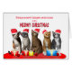 Een grappige en leuke kerstkaart met vijf katten die in een rij kerstmanden dragen. De woorden Meowy Kerstmis staan boven de katten. Elke kattenliefhebber zal hier van houden. Een kerstkaart voor uw dochter en man.