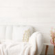 Moderne, minimalistische kussen met een eenvoudig, gouden herfstblad