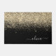 Gold Black Glitter Script Monogram Girly Name Deurmat