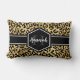 Met een aangepaste naam en een sjabloon van een monogram kunt u het zwarte lumbaalkussen met goud en zwarte luipaard afdrukken. Een schattige en trendy safari foto van het dierlijk afdrukpatroon met je eigen beetje personalisatie.