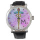 GOLD CADUCEUS MET CELTISCHE KENNIS MONOGRAM Blauwg Horloge
