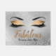Gold A Fabulous Women Lives Hier is Glitter Eyes Doormat voorzien van een paar grote oogdeksels met goudglitteroogschaduw, een diamantachtige voering met lange zwarte wiekjes op een zilveren glittervormende achtergrond. Het woord 'fabulous' is geschreven in een script dat overeenkomt met het goud van een kleine zilverkoningin die vanaf de bovenkant van de lus op de 'L' hangt. 'A' en 'Vrouwen wonen hier' zijn in zwart, kleiner schrift boven en onder het woord geweldig. Ontworpen door Jacqueline.