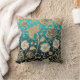 Goud en witte bloemen met turquoise en zwarte achtergrond op de wervel. AI gemaakt.