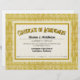 Spectaculaire gouden glittermodderkleding Certificate of Achievement om aan te passen aan de wensen voor speciale presentaties op school, in het bedrijfsleven, in de kerk, in individuen, in het gezin of in de gemeenschap. De naam van het verlof zwart voor schrijf-binnen certificaten. Het centrum op rug is een plaats voor de naam en het adres van de organisatie. Afrikaans geïnspireerd design met een schone en eenvoudige look. Type modder: MC1