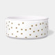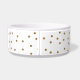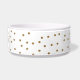 Stijlvol, witte keramisch voeder voor gezelschapsdieren/waterkom, met een afbeelding van gouden glitterijpolka-stippen. Personaliseer de zwarte manuscripttekst voor uw huisdier of als groot cadeauidee voor om het even welke huiseigenaar.