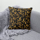 Deze goot kussen bevat een patroon van goudbladeren op een dramatische zwarte achtergrond. Beide zijden van de kussen hebben hetzelfde patroon.