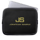 Custom Monogram Initiaal Zwart Faux Gold Tekst Modern Sjabloon 10 inch Laptop Sleeve.