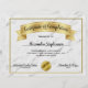 Elegant marmer and gold effect banner scriptlettergrootte 8.5"x11" certificaat van voltooiing om studenten, werknemers of iedereen te belonen voor het afronden van een cursus, school, training of onderwijsprogramma. Ideaal voor elk carrièregebied of voor gebruik in de bedrijfstak. Aangepast ontwerp in prachtige witte en grijze marmerachtergrond met gouden lijsten. Beloon de inspanningen van uw studenten en personeel met dit klantgerichte, gepersonaliseerde certificaat. Pas online uw eigen tekst aan, en ordecertificaten die voor uw afstuderen of prijsuitreiking worden gemaakt. Verlaat de spatie van het handtekeningsgebied om een handtekening later toe te voegen, of typ jouw naam en titel, en voeg nog uw handtekening hierboven toe. De naam van Honoree kan in worden getypt of de lege lijn kan worden verlaten om hand-geschreven of gedrukte namen later toe te voegen.