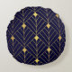 Gold Navy Blue Art Deco Diamond Pattern Rond Kussen
