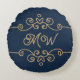 Gold & Navy Blue Elegant Flourish Monogram Rond Kussen