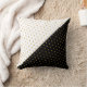De afbeelding gooit kussens met prachtige gouden metalen blikstippen op zwarte en witte achtergrond. Ideaal voor een modern thuisdecor.