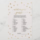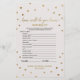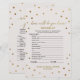 Deze gouden polka stip "hoe goed ken je het bruidspel" is perfect voor een elegant vrijgezellenfeest. Aan de voorkant van de gamekaart staat "hoe goed ken je de bruid" en aan de achterkant van de kaart staat "wat er in je tas zit". Het eenvoudige ontwerp is voorzien van een goudbekentenis op een roomvormig champagne-achtergrond met een mooie faux gouden folie-kalligrafie. Pas de voorzijde van de kaart aan met de bruidsnaam en de datum van het vrijgezellenfeest. Opmerking: dit ontwerp is niet voorzien van echte gouden folie. Het is een afbeelding van hoge kwaliteit die gemaakt is om op gouden folie te lijken.