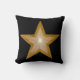 Moderne vormgeving met een "shining" gouden en witte ster op een zwarte achtergrond, uw keuze aan tekst op de achterkant. De kussen van de draad met een klantgericht ontwerp voor u om met uw eigen tekst, afbeeldingen en ideeën te personaliseren. Dit is een digitaal afbeelding gemaakt met behulp van originele foto's en digitale technieken en geprint op stof, dat niet schittert of echte enkels bevat.
