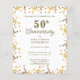 Gold Stars 50th Jubileum Budget Invitation bevat delicate gouden liefdeshart en steruitsparingen. Personaliseer uw 50ste gouden jubileuminformatie met elegante gouden belettering.