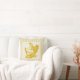 Het koude kietelpatroon in goud, met een middenvierkant met een mooie afbeelding van rooster en kip erin. Dit landskiekussen heeft een bijtend gevoel.