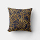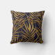 Deze werpkussens zijn voorzien van een patroon van gouden tropische bladeren op een donkerblauw marineschopje. Beide zijden van de kussen hebben hetzelfde patroon.