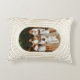 Een prachtig kerstkussen voor het gezin dat kan worden aangepast met jouw tekst en familiefoto. Gulden kerstaccenten met ovaal beeld en witte achtergrondkleur.
