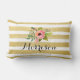 Decoreer uw Living Room in stijl met dit Sierkussen "Gold White Stripes Chic Waterverf Flower Monogram". U kunt uw monogram, naam of tekst op dit ontwerp toevoegen. Het is makkelijk en leuk.