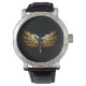 Kleine gouden engel vleugels op een donkere achtergrond. Gouden vleugels.