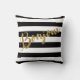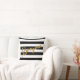 De franse uitdrukking "Bonjour", die in faux gold is gemaakt, wekt de indruk dat er geen tegenstrijdige zwarte en witte strepen op deze kussen zitten. Geweldig voor de francofiel of iemand met een Franse flair.