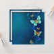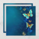 Vliegend goud, juwelenvlinder op blauwe texturele achtergrond. Ontwerp met vlinders.