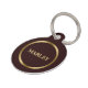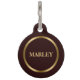 Elegant monocentrisch metalen gouden cirkel over de bruine achtergrond. Aan de andere kant zijn de naam en het telefoonnummer op gouden achtergrond