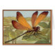 het insect heeft gouden en bruine tinten en de achtergrond shows een moeras met water en lilypads .