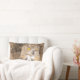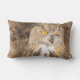 Een verbluffende Euraziatische Eagle Owl met grote gouden ogen wordt in een grijze achtergrond gemengd op deze van een soort gooiende kussen.