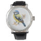 Een prachtig met de hand beschilderde waterverf van een blauw tietje dat sierlijk tussen gouden tarwestengels is neergestreken. Dit delicate en elegante ontwerp legt de sereniteit van de natuur vast, ideaal voor vogelliefhebbers, liefhebbers van het platteland en degenen die rustieke charme waarderen.
