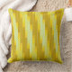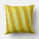 Dit is een abstract kunstwerk met een energiek samenspel van geel en amberkleurige diagonale vormen en een contrasterend diagonaal lijnenrasterpatroon, wat resulteert in een betoverend abstract printwerpkussen.