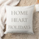 An ivory holiday accent pillow featuring stacked serif lettering—Home, Heart, Holidays—bringing a warm seasonal touch to sofas and reading chairs. Its neutral palette pairs easily with festive décor, adding a welcoming layer to holiday evenings at home.