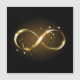 Goud, sieraden infinity symbool met gouden sterren op een zwarte achtergrond. Ontwerp met gouden ster.